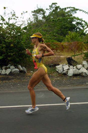 Run course record holder and winner in 1999, Lori Bowden, early in the run working herself up the field on Alii Drive. Lori would eventually finish in second place behind Natascha Badmann from Switzerland.