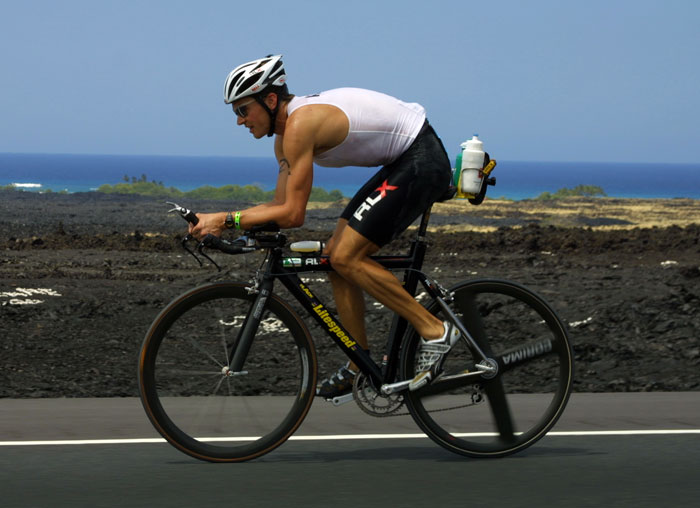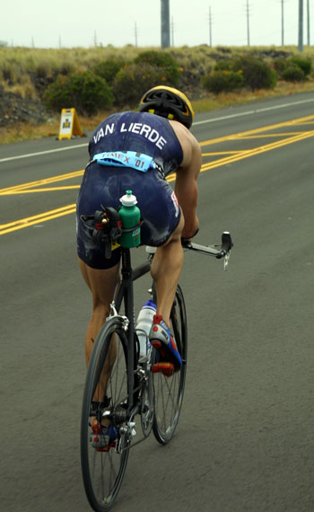 The eventual winner, Tim DeBoom of Boulder, Colorado, near the Scenic Point on the way back from Kawaihae.