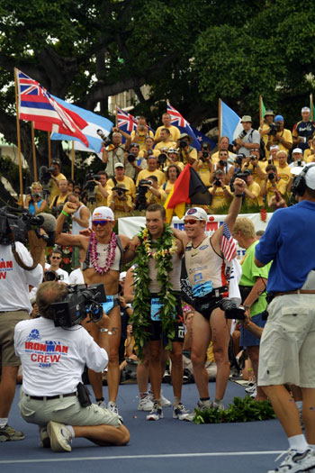 Tim is flanked by second place finisher Cameron Brown from New Zealand and third place finisher Thomas Hellriegel from Germany (the winner in 1997).