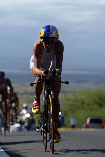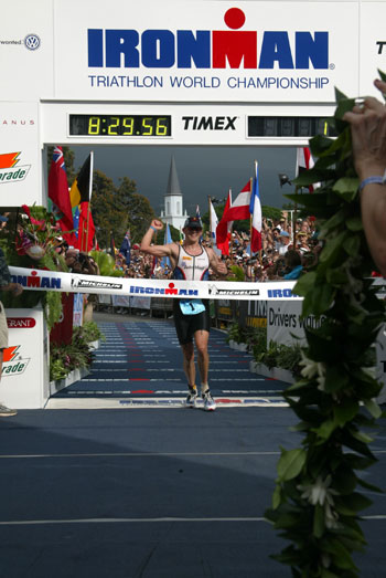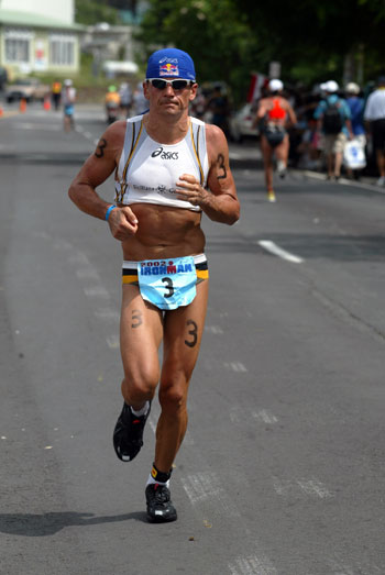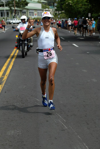 "Swiss Miss" Natascha kept running and smiling while shaka greeting the bystanders. She seemed to be thoroughly enjoying the day as she raced towards her fourth win in Kona.