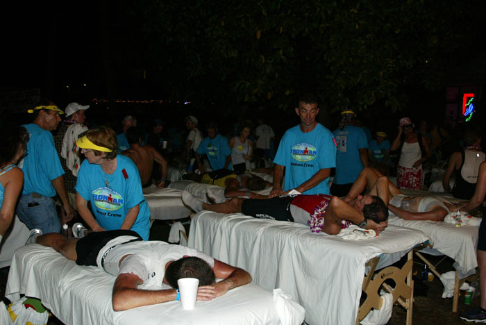No matter when you cross the finish line, you can look forward to well deserved, high touch attention from the many excellent volunteers in the massage area right near the finish.
