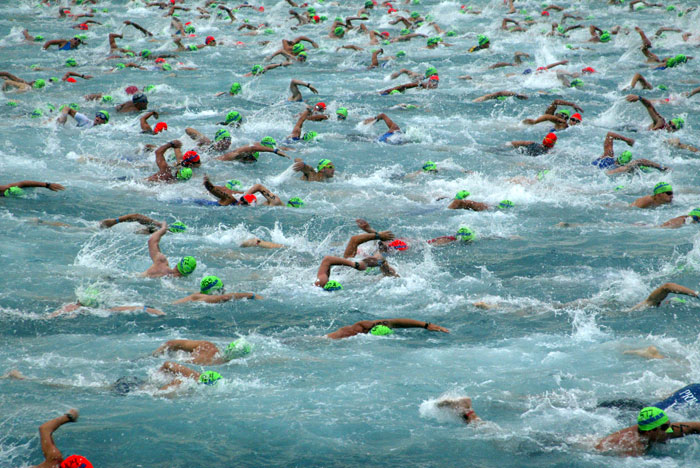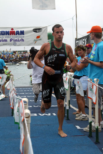 Age group athlete Jan Sibbersen of Germany repeated his first place out of the water from last year. More remarkable, he was only 41 seconds slower, with a time of 48:10. As a result of his effort, he gapped a group with Tim and Tony DeBoom, Christoph Mauch, and Camerons Brown and Widoff by some four minutes.