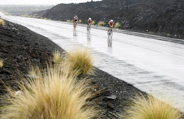 On the lava fields on the way back, riders were greeted by a good half hour of rain, making this ride relatively easy.