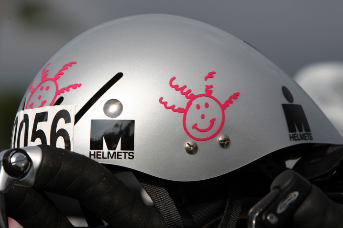 Kate Major's helmet in the swim-to-run transition. The Aussie would finish third with a time of 9:19:13.