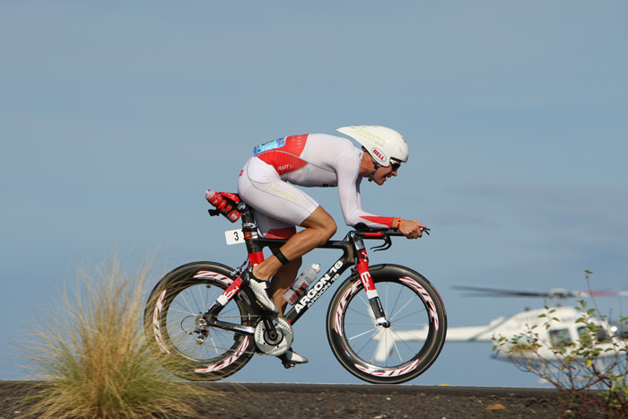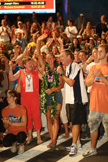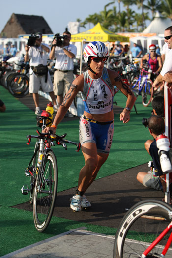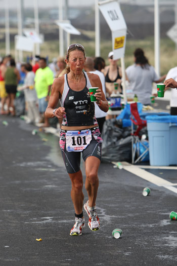 Chrissie Wellington of the United Kingdom in the latter part of the run on her way to a second consecutive Ironman win. Her time would be 9:06:23, a new personal best in Kona.
