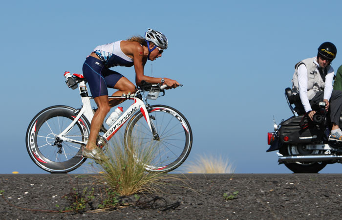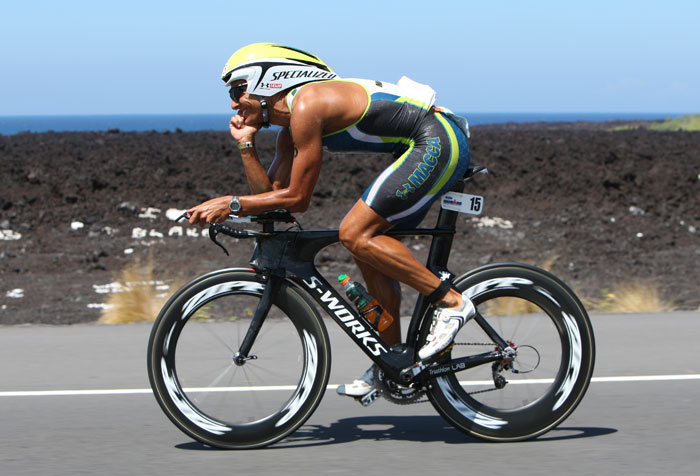 Fourth-place finisher Chris McCormack relaxing on the bike on the way back from Kawaihae, after the Scenic Point climb.