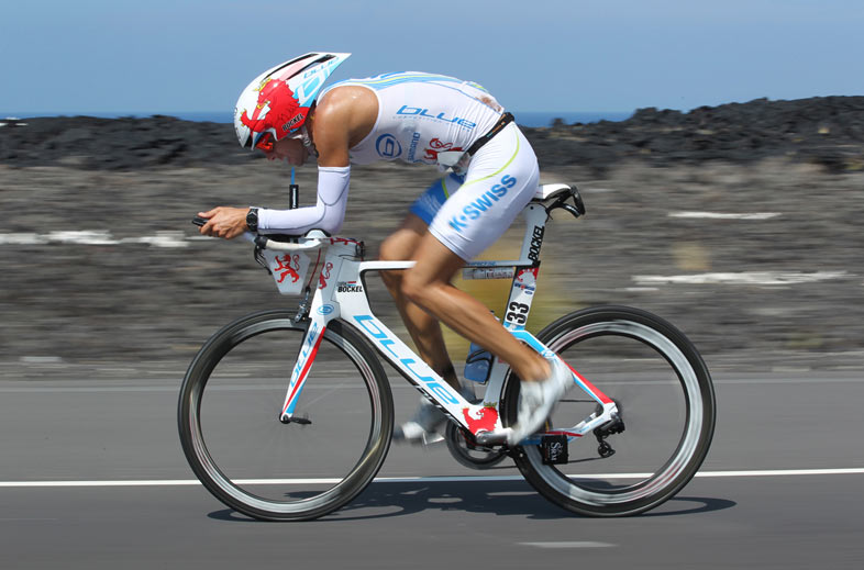 10:55 Dirk Bockel of Luxemburg having just passed the Mauna Lani aid station (where drinks and hamburgers with all the trimmings are served) on the way back. He finished the race in fourth place overall. This image is taken with a low shutter speed.