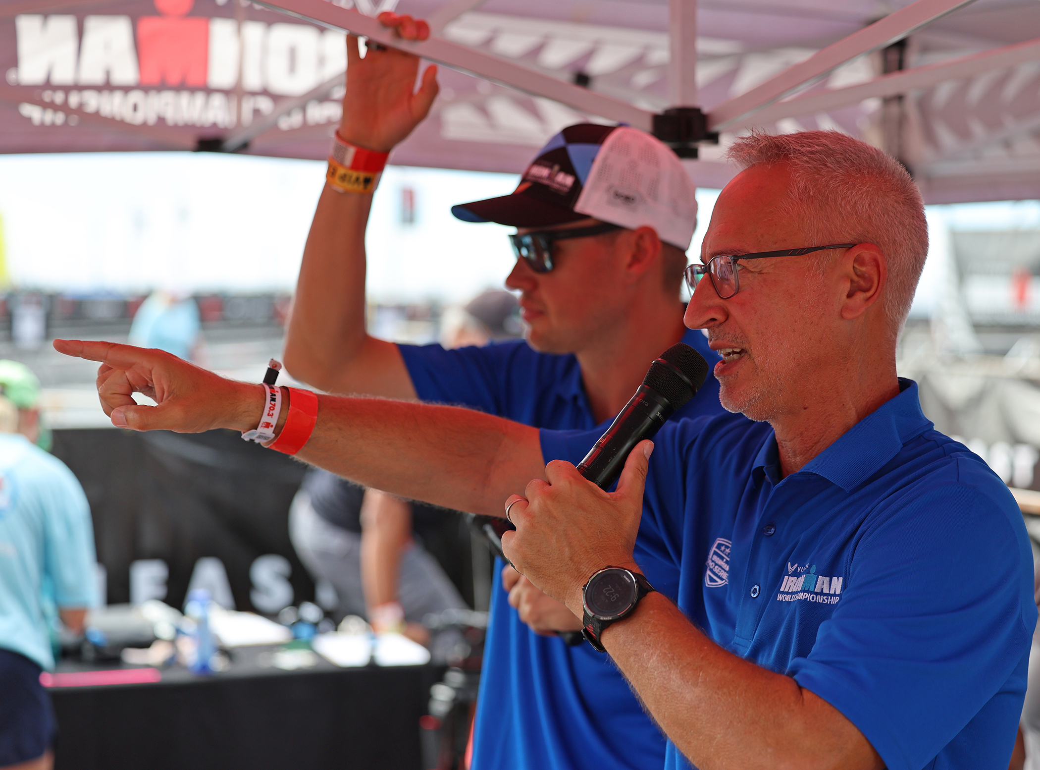 Capture time 09:22: The formidable announcers Paul Kaye and Robson Lindberg calling out athletes at the swim finish.